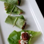 Top each leaf with a small helping of diced tomatoes, crumbled goat cheese, and glazed nuts.